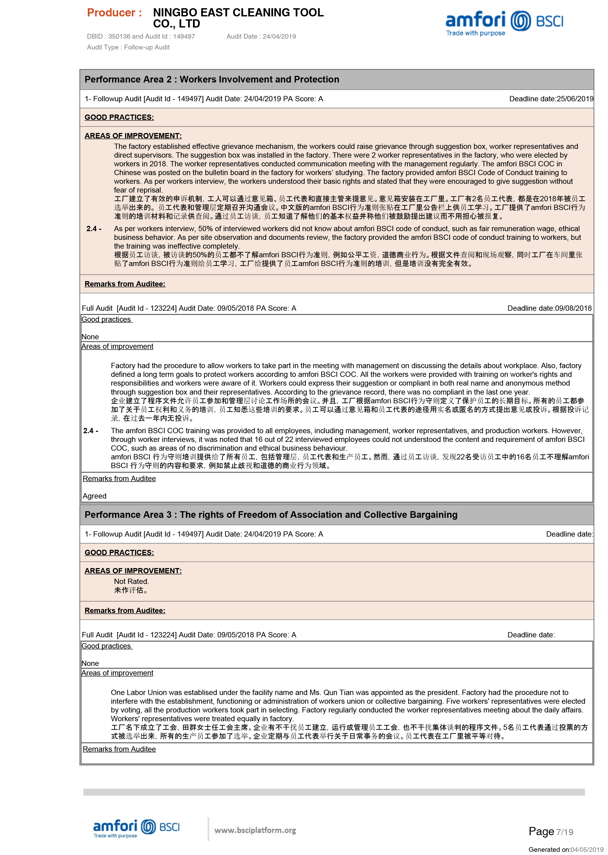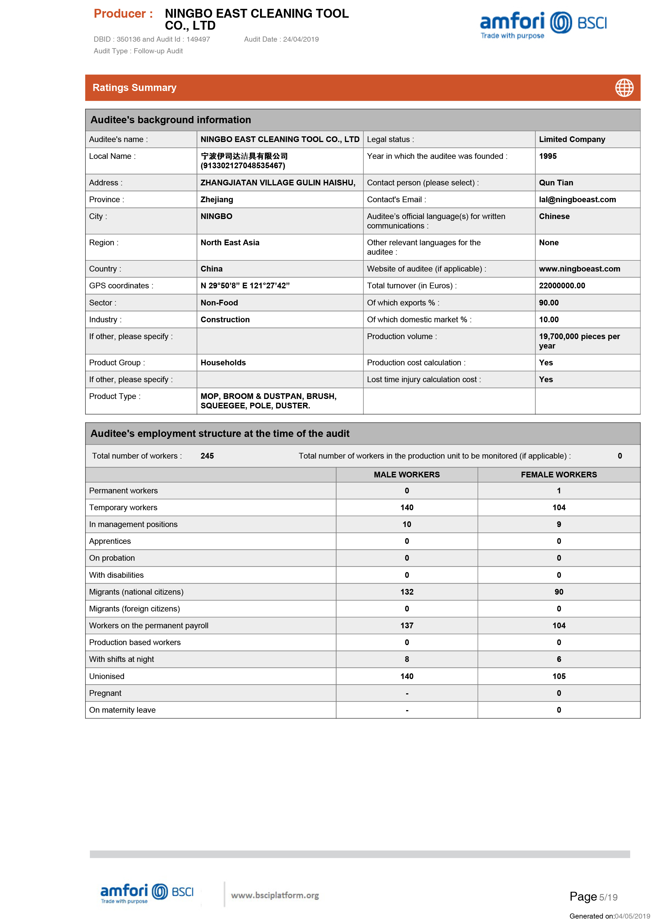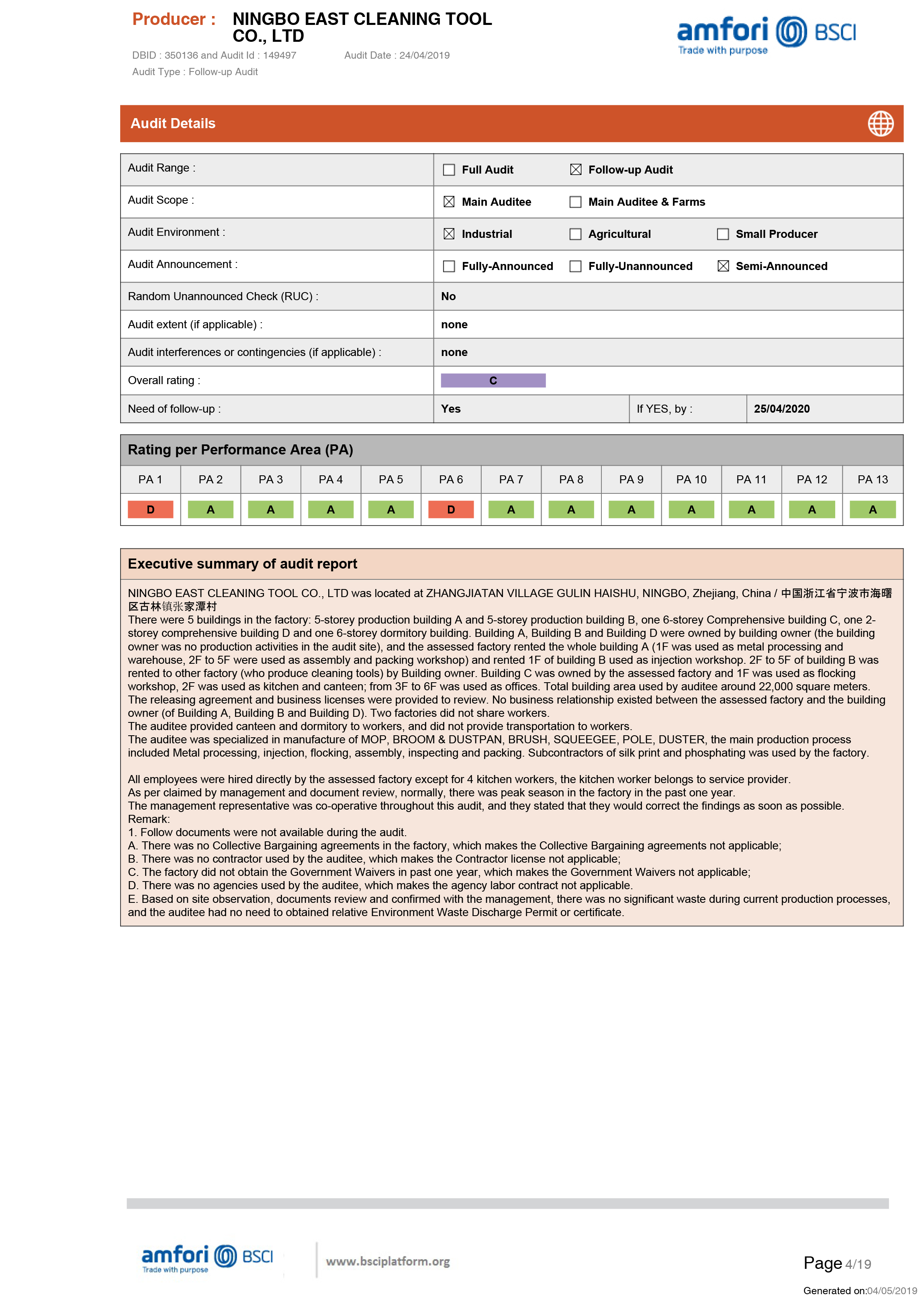 伊司达 SummaryAuditReport(BSCI 2018年)