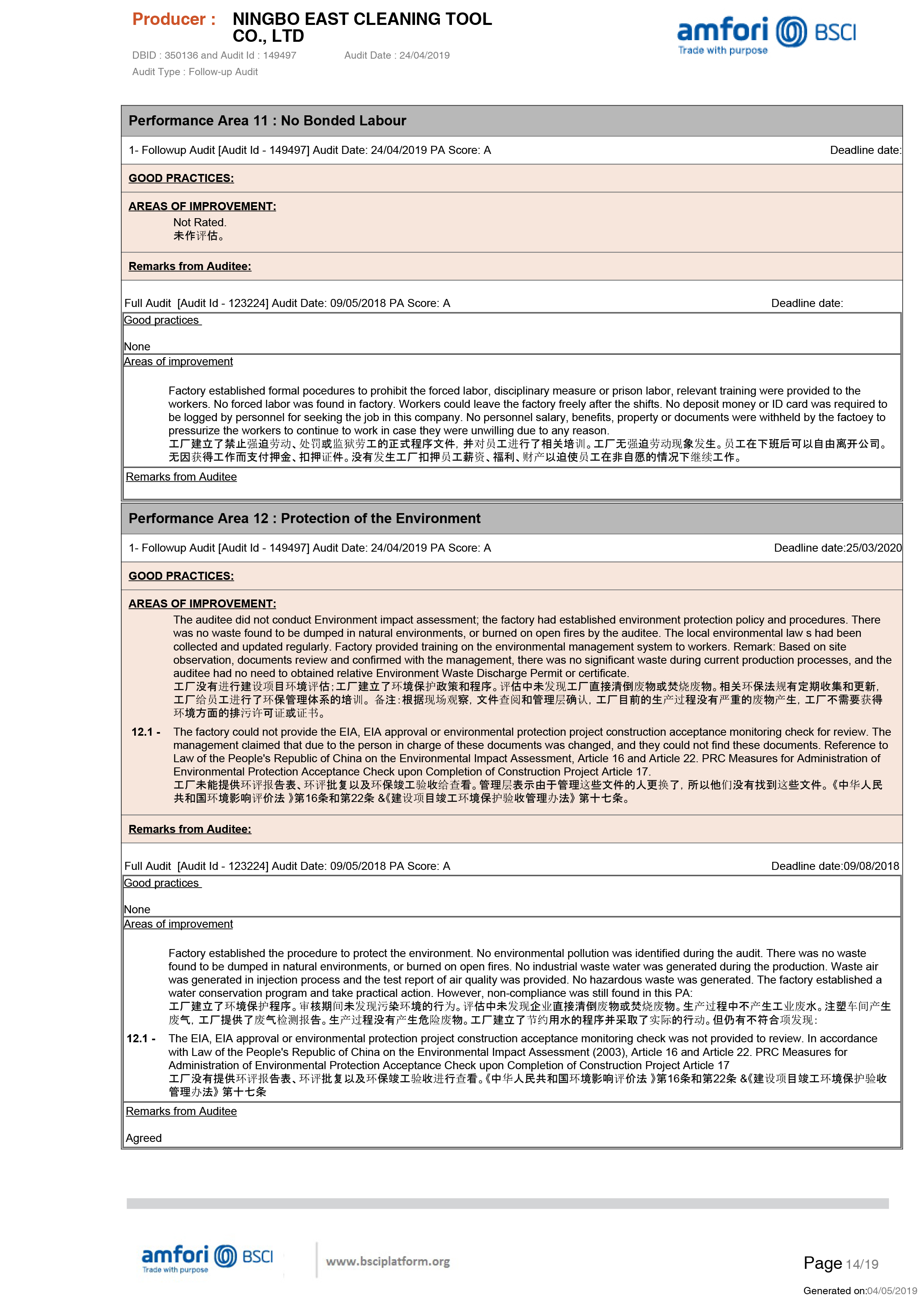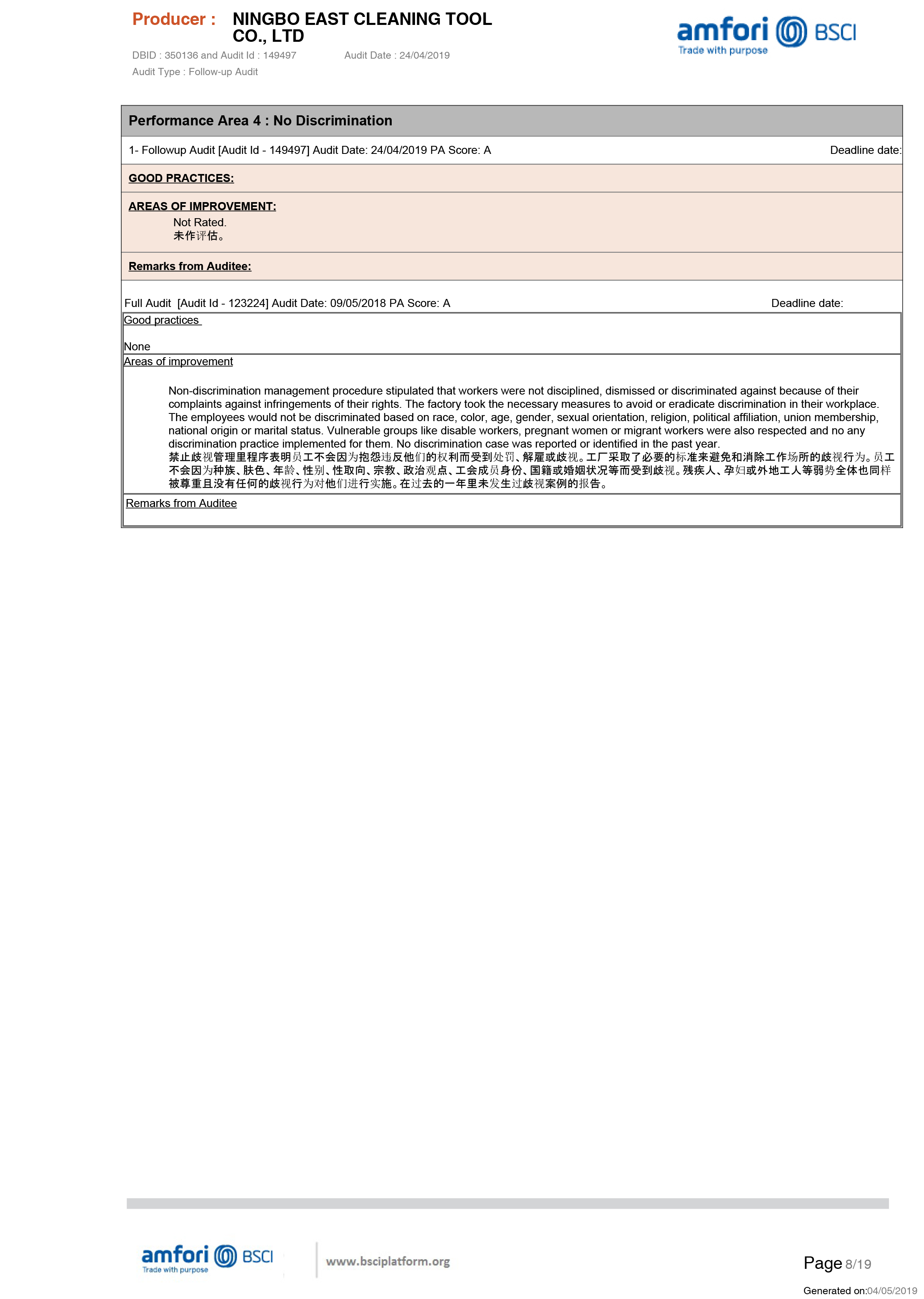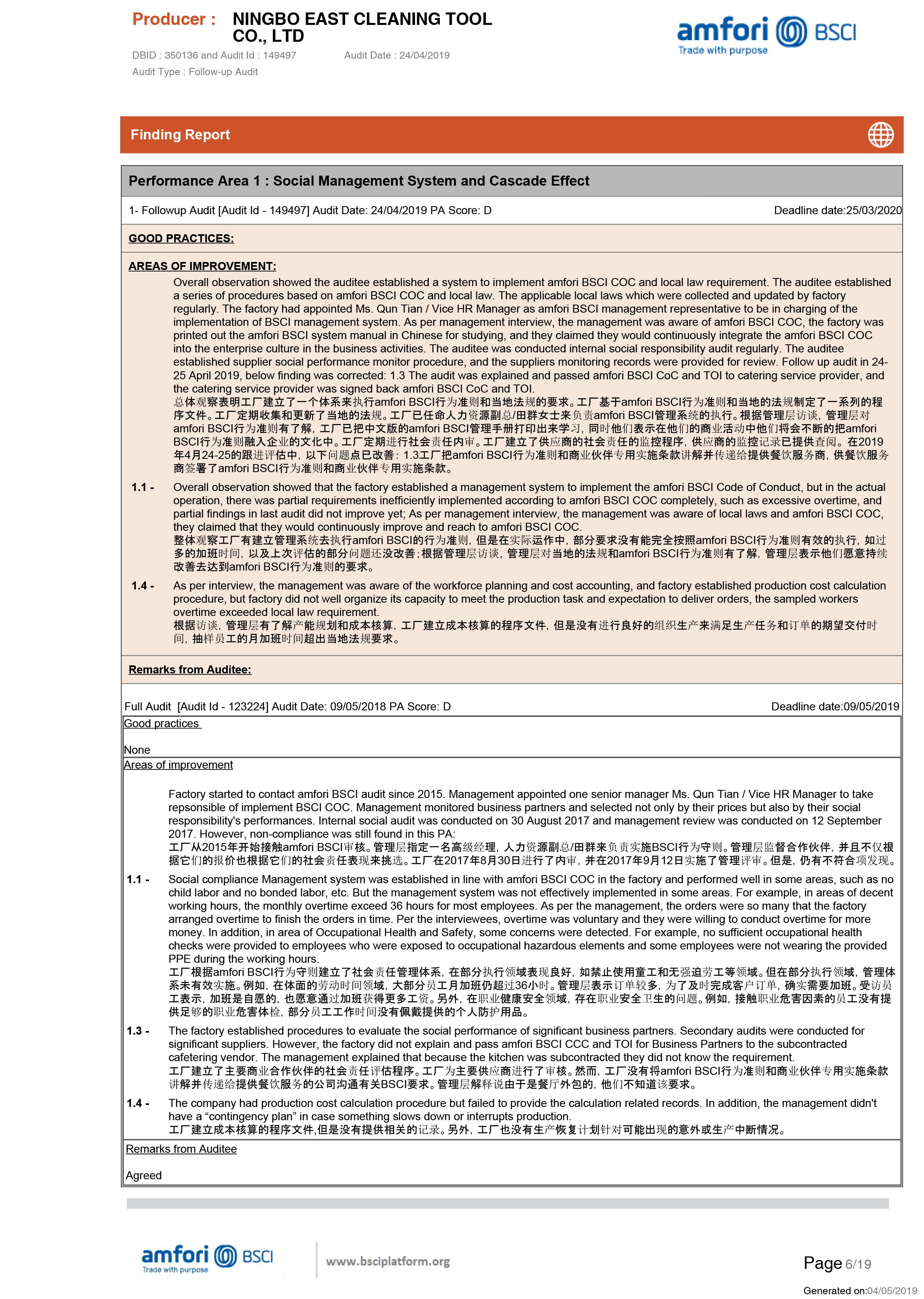 伊司达 SummaryAuditReport(BSCI 2018年)