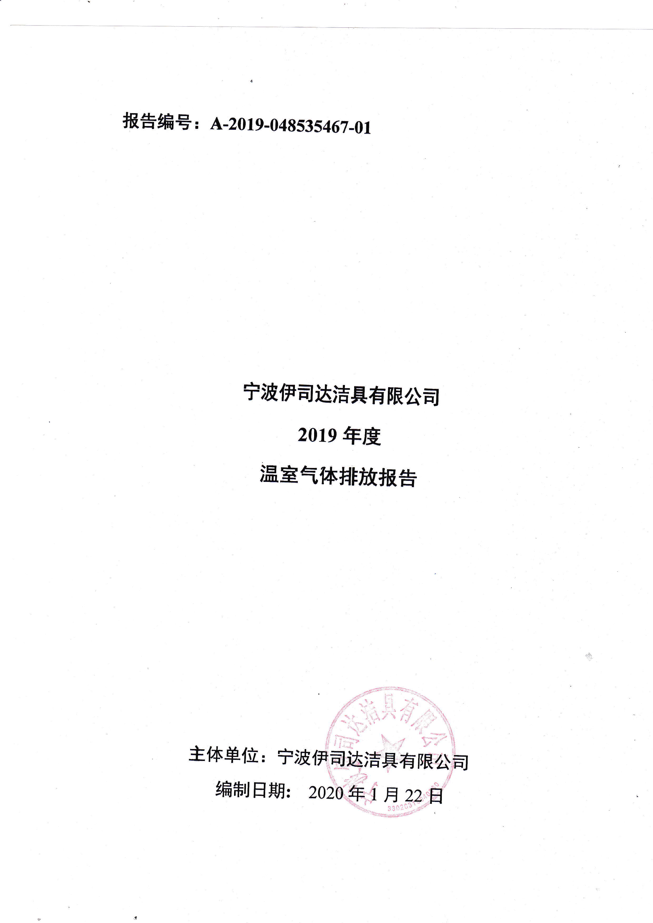 寧波伊司達潔具2019年度溫室氣體排放報告。